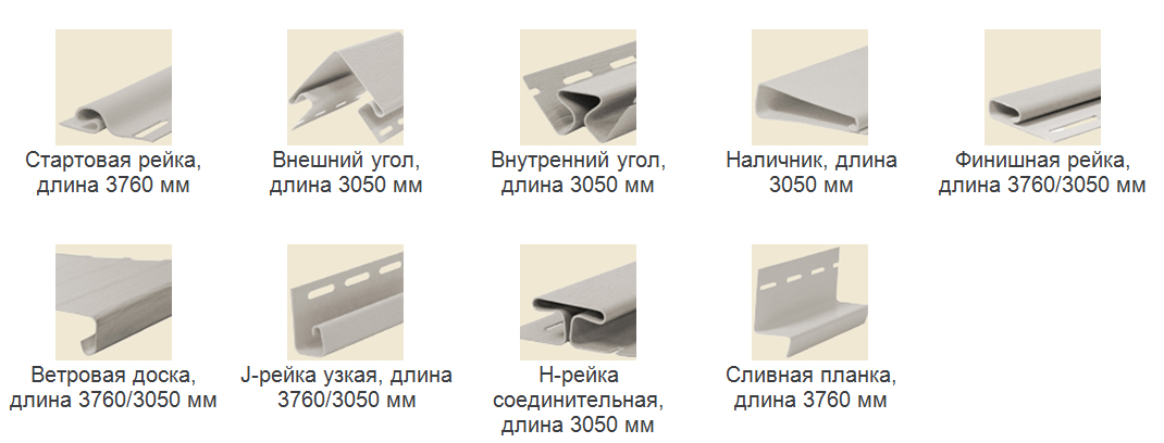 - innere und äußere Ecken machen die Verbindungen von Vinylplatten an den Ecken des Gebäudes aus;