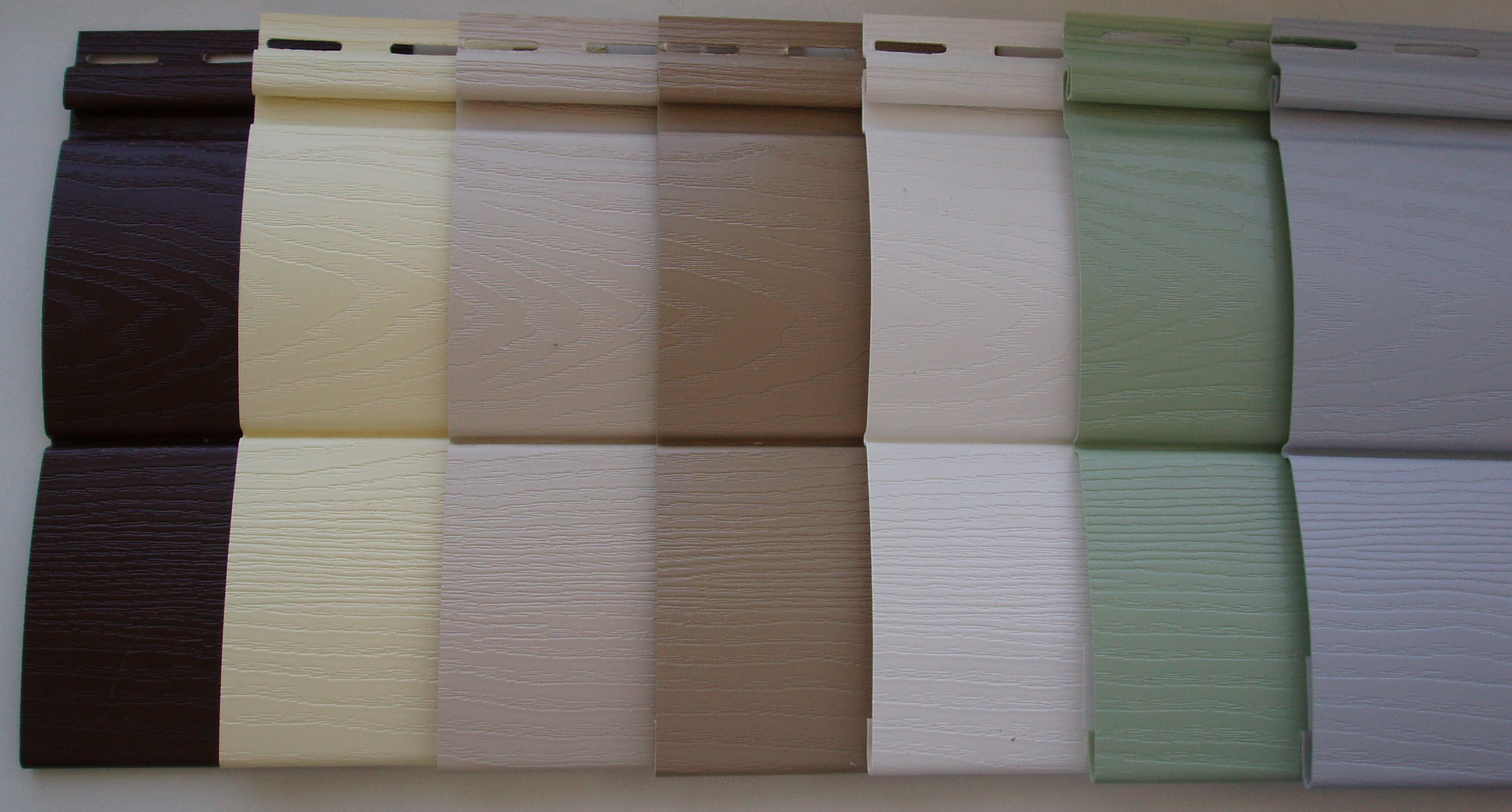 Die mit diesen Tafeln verzierte Fassade scheint vom Stamm kaum zu unterscheiden. Die abgerundete Form des Profils ermöglicht eine sehr genaue Imitation des Materials aus natürlichem Holz. Die Farbskala wird durch zarte Pastelltöne (Pistazien, Sandelholz, Sakura, Elfenbein und andere) und tiefe, satte Töne (helle und dunkle Eiche, Mogano) dargestellt.