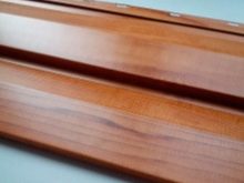 Zum Beispiel, um die Hauptwand einer Wand in einem hellen Ton von gebleichter Eiche zu machen, und die Verkleidungsbretter und die Eckfassadenlatten aus dunkler sibirischer Zeder zu setzen.Wenn der Hersteller denselben Standard für die Herstellung von Komponenten verwendet, kann der Farbumfang vom Kunden unabhängig ausgewählt werden.