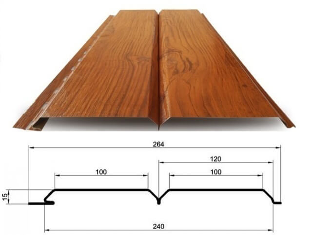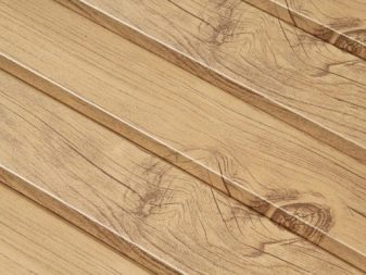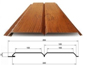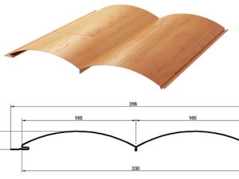 Diese Eigenschaften sind wesentlich für die Vorbereitung der Installationsstruktur der Latte. Bleche haben unterschiedliche Größen. Der Inlandsmarkt bietet in der Regel Fahrspuren von 0,5 bis 6 Metern Länge und von 22,5 bis 32,5 cm Breite. Die Dicke einer Verkleidung kann von 0,4 mm bis 1,5 mm variieren, abhängig vom Standard des Herstellers. Das Gewicht eines Elements beginnt bei 5 kg. Ein Übersee-Hersteller kann breitere Platten liefern, die optisch wie große Holzplatten aussehen.