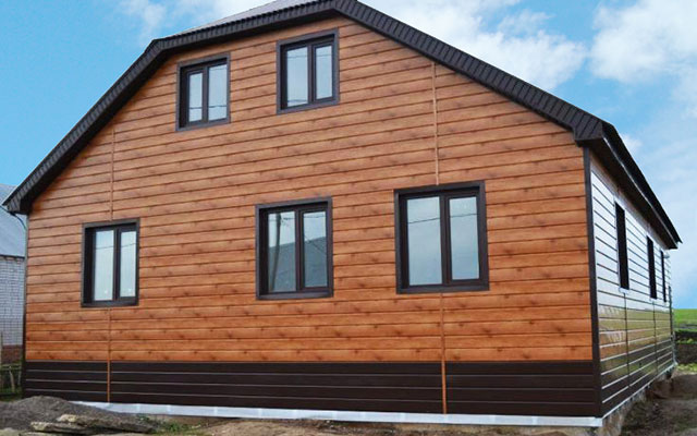 Heute ist die Textur der Verkleidung als Verkleidung,Die schnell zu veredelnde Fassade wird selten in ihrer ursprünglichen Holzfüllung verwendet, da Naturholz ständige Pflege erfordert und der Preis dafür nicht zu erschwinglich geworden ist.