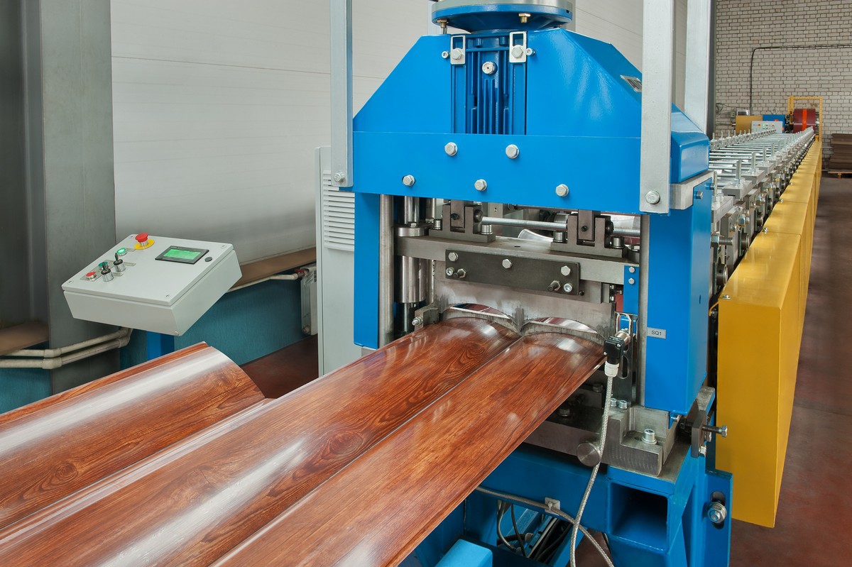Metallverkleidungsplatten werden aus kaltgewalzter Kohlenstoffstahllegierung hergestellt. Eine schützende Antikorrosionsbeschichtung wird auf jede Folie aufgetragen. Als nächstes kommt das "Holzmuster". Dies kann ein Polymerfilm sein, der das Printech-Offsetdruckverfahren verwendet, oder eine spezielle Tinte, die das Sonnenlicht reflektieren und die Seitenwand kälter machen kann.