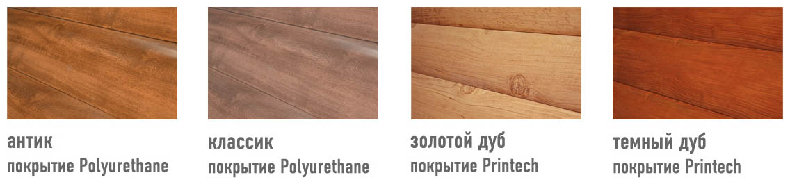Das Farbschema ist im Vergleich zu Analoga von Vinyl sehr unterschiedlich. Einige Hersteller bieten den Service an, die Textur des Baumes aus dem Katalog zu wählen.