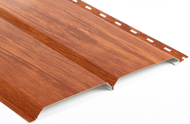 Holzplatten wurden zuerst durch Plastik oder Vinyl ersetzt. Danach kam die Abzweigung des Metalls. Neue Trends in der natürlichsten Erscheinung des Wohnens drängten die Designer, die Technologie für die Metallverkleidung zu entwickeln, die unter dem Schnitt von natürlichem Holz gemalt wurde.