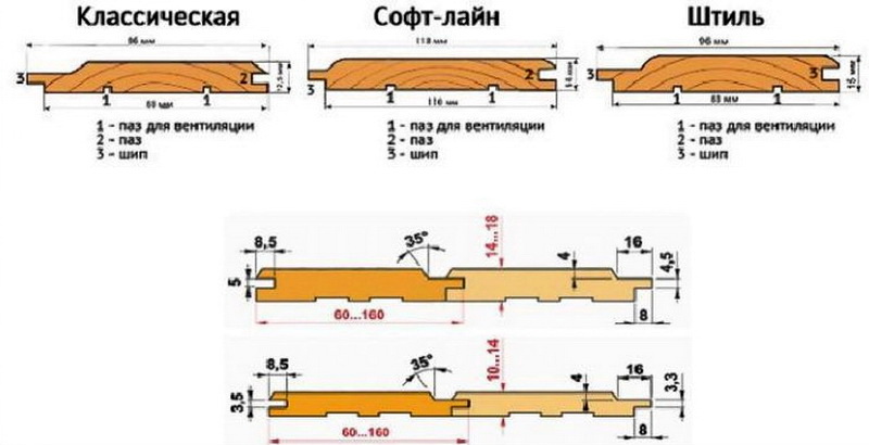 - Planken - Holzbohlen, deren Kanten entweder abgeschrägt oder abgerundet sind. Diese Optik wird bei der Fertigstellung von Außenfassaden von Gebäuden und Innenräumen verwendet. Es wird auch beim Bau von Lauben, Zäunen und Terrassen verwendet.