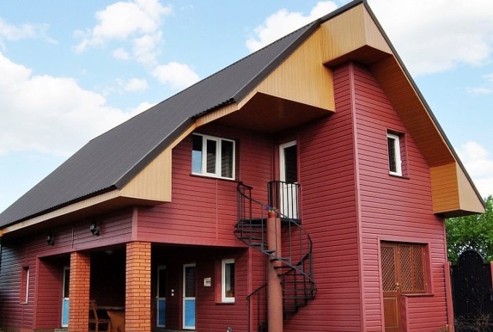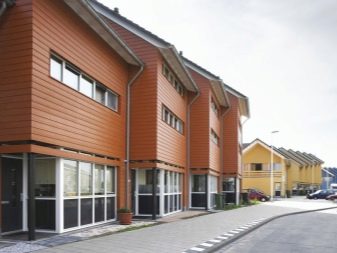 Die Fassade, getäfelte kann "atmen" und beseitigt die Ansammlung von Kondenswasser an den Wänden. Siding sieht gut aus in Kombination mit anderen Arten von Ausrüstungsmaterialien. Zum Beispiel können Sie ein originelles Design der Fassade eines Gebäudes erstellen, indem Sie "hölzerne" Paneele mit Klinkerfliesen kombinieren.