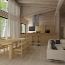 Unter anderem hat der Baum eine ausgezeichnete ästhetische Leistung. Wenn sie das Haus draußen umhüllen, dann können Sie sich keine Gedanken über die isolierenden Eigenschaften des Materials machen: Der Baum wird mit dieser Rolle zurechtkommen. Aufgrund ihrer Umweltfreundlichkeit eignen sich Holzpaneele nicht nur für die Außenverkleidung, sondern auch für die Inneneinrichtung von Räumen, wobei die Breite und Dicke der Platten in diesem Fall viel kleiner sein sollte als für Außenarbeiten.