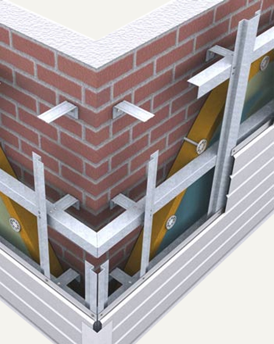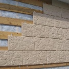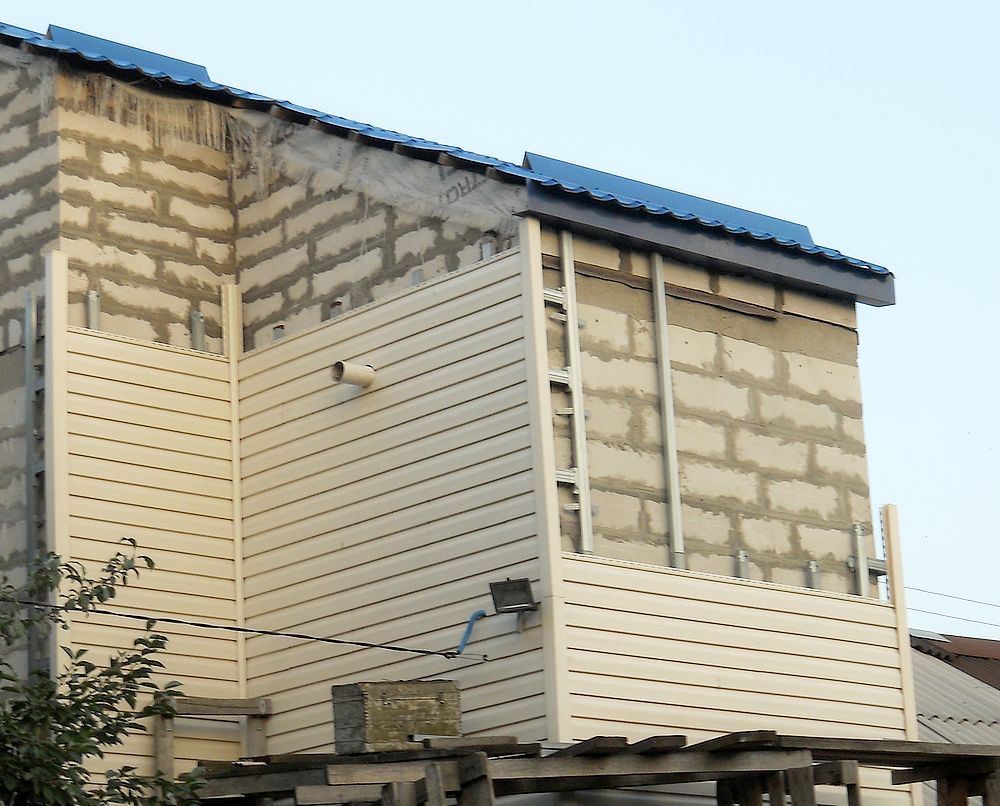 Die Option kann an den Fassaden aus beliebigem Material verwendet werden: Ziegel, Block, Holz, Rahmen. Die Befestigung ist leicht gemacht. Jeder der Hersteller selbst sorgt für den einen oder anderen Satz von Dobornik und Ankern, die während der Installation verwendet werden. Geschäumtes Abstellgleis wird von unten nach oben gelegt, wie andere Abstellgleisvarianten. Da das Material leicht ist, können die Führungen darunter mit einer erhöhten Stufe von 70 cm befestigt werden, was die Installation erheblich vereinfacht und Zeit bei den Vorbereitungsarbeiten spart.