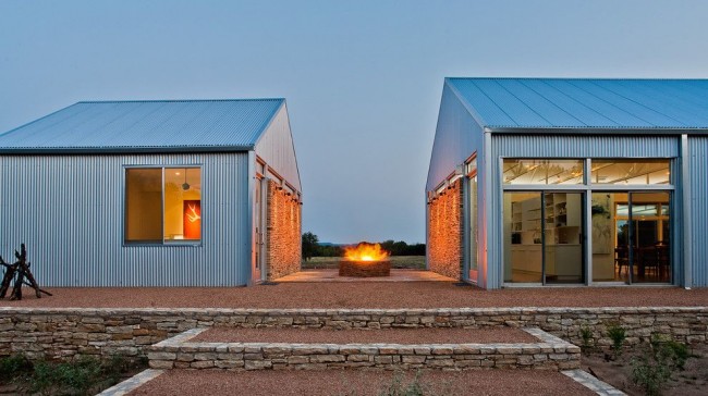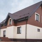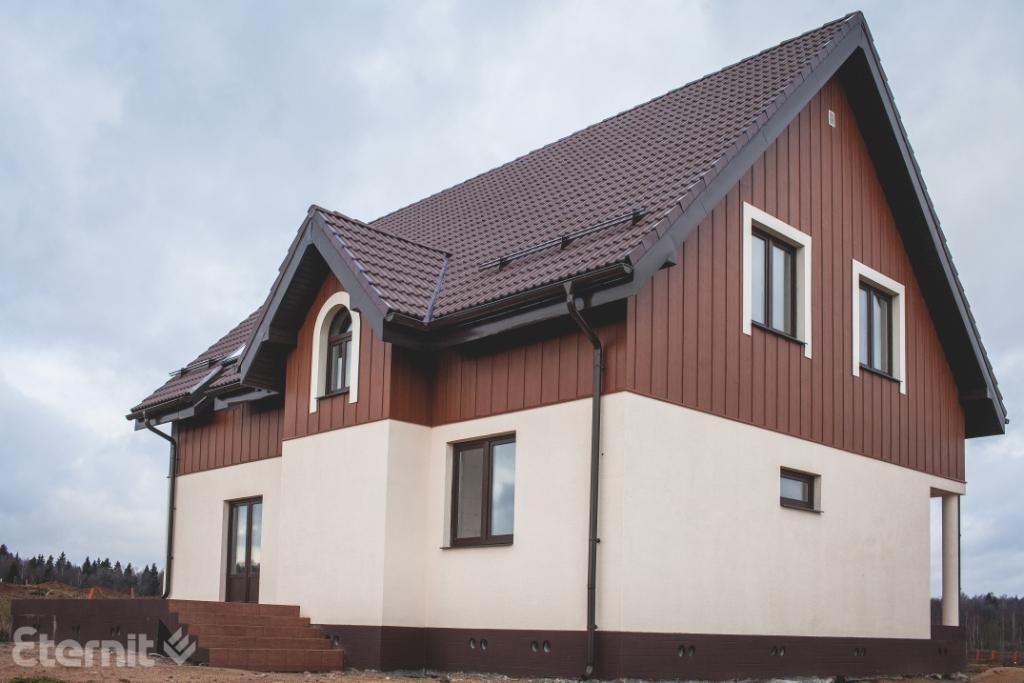 Diese Option wird aufgrund ihrer Funktionen als technischer und externer Inhalt sehr geschätzt. Erstens haben die Paneele eine große Auswahl an Dimensionen. Sie sind in Versionen von 12 cm bis 55 cm Breite erhältlich. Die Länge beträgt 2 bis 6 M. Zweitens ermöglicht das Färben und Verarbeiten, dass das Material dem Aussehen, unter dem es stilisiert wurde (normalerweise Holz oder Stein), so nahe wie möglich kommt. Die Polymerbeschichtung, die bei der Verarbeitung von Metall verwendet wird, ermöglicht eine schöne Kombination von Metalldach und -wänden, die mit einer Stahlverkleidung versehen sind.