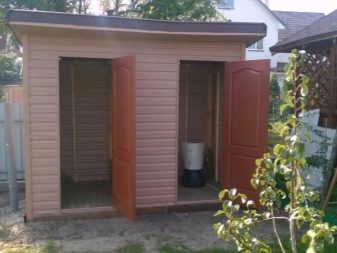 Gut behandelte Paneele können auch in den Nebengebäuden verwendet werden, zum Beispiel für Toiletten und Duschen im Freien. Vinyl ist für diese Zwecke hervorragend geeignet, da es auf Feuchtigkeit, die darauf auftrifft, positiv reagiert, und innerhalb der geschlossenen Struktur wird es bei sich ändernden Temperaturbedingungen des Wetters weniger deformiert.