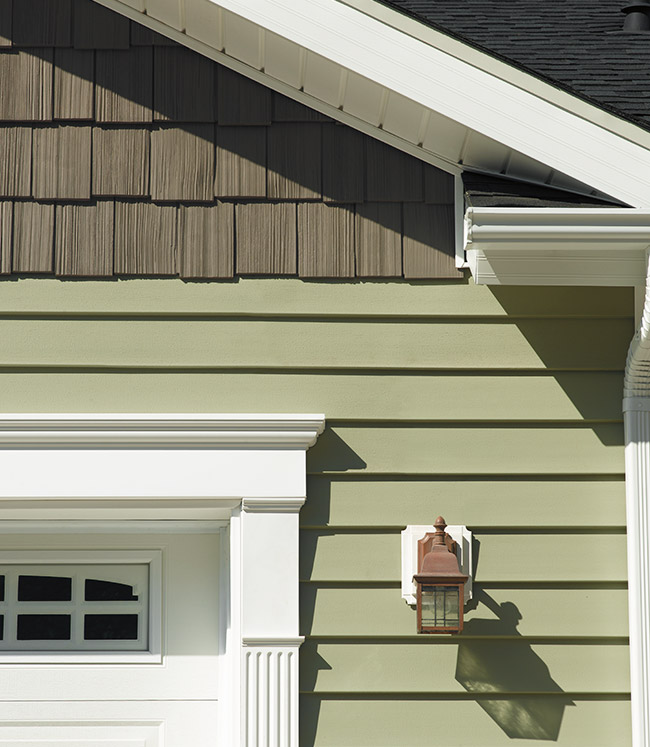 Faserzementverkleidungsplatten sind notwendigerweise mit Metall- oder Vinylkomponenten zur Belüftung ausgestattet, die auch lackiert werden können.