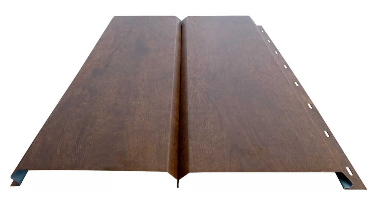 Diese Option ist ziemlich teuer, weshalb sie nur selten als Deckschicht für private Haushalte gewählt wird. Es hat ein beträchtliches Gewicht, weshalb es besser ist, nicht zu versuchen, solche Platten alleine zu installieren. Die Vorteile von Aluminium liegen in der Wahl von geprägten und glatten Oberflächen. Dadurch wird eine maximale Plausibilität erreicht: Aluminiumplatten sind kaum von Holz zu unterscheiden. Es ist erwähnenswert, dass durch die Gegenüberstellung mit einem solchen Material die Gesamtkonstruktion des Hauses nicht schwerer wird, die Belastung des Fundaments nicht erhöht wird.