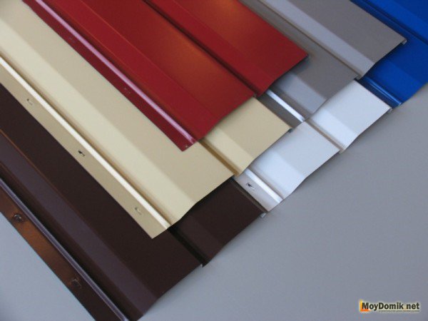 Die Paneele können jedoch nicht nur durch Auftragen einer Polymerbeschichtung darauf lackiert werden. Es gibt auch Farbflecken. Wenn im ersten Fall die Farbpalette sehr begrenzt ist (es sind nur sechs Farben verfügbar), können Sie mit der Pulverfarbe die Farbe der Verkleidung ändern.