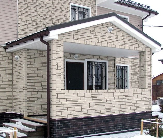 Sie können Verkleidungen jeder Farbe finden - alles hängt davon ab, welches Material ausgewählt wird. Am klassischsten sind alle Brauntöne, da auf diesem Hintergrund ein holziges Muster leicht nachzuahmen ist. Oft sieht man auch graue und weiße Modelle, die zum Teil festlich und feierlich wirken und dem Haus manchmal ein mattes und staatsähnliches Aussehen verleihen.