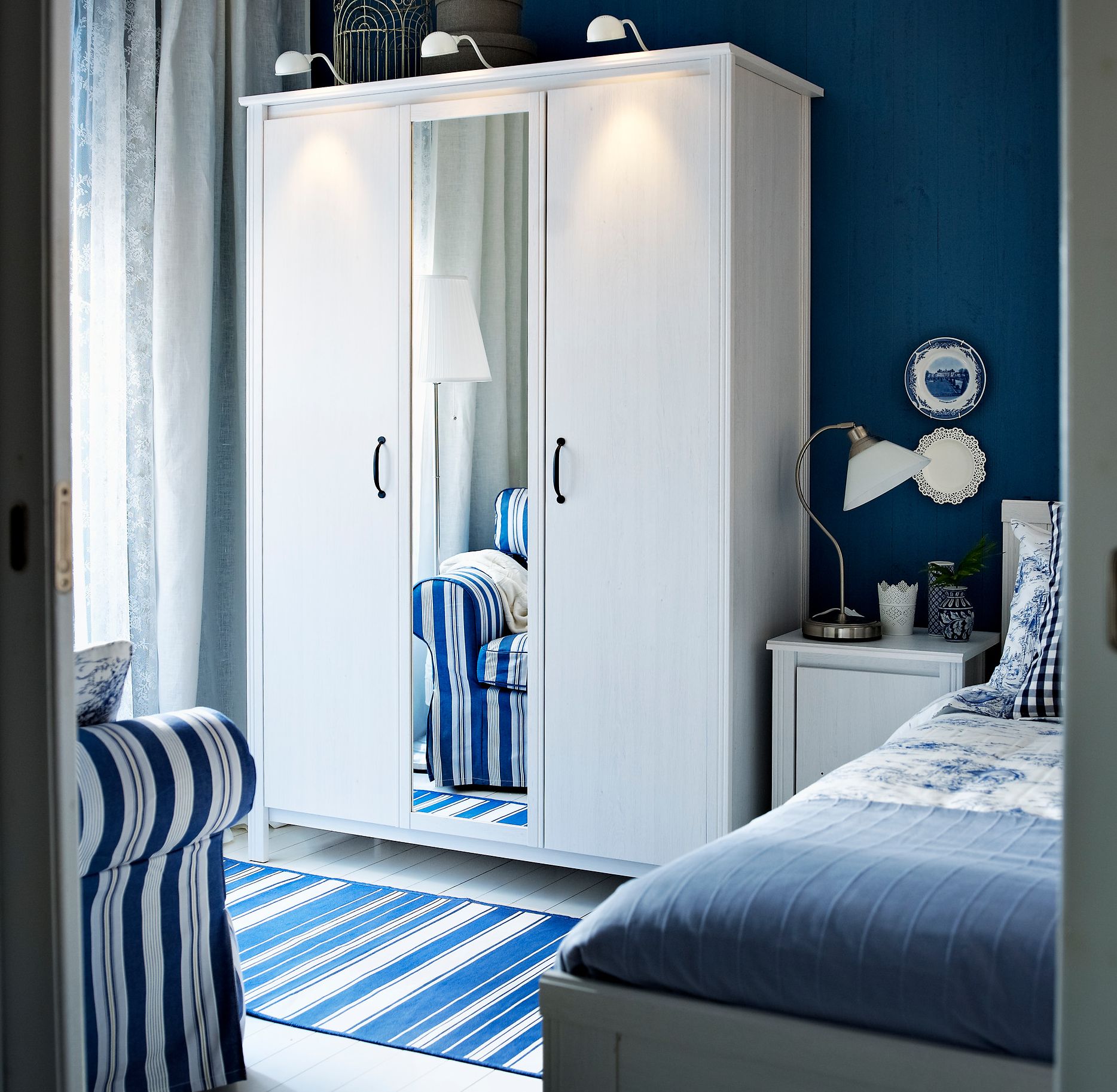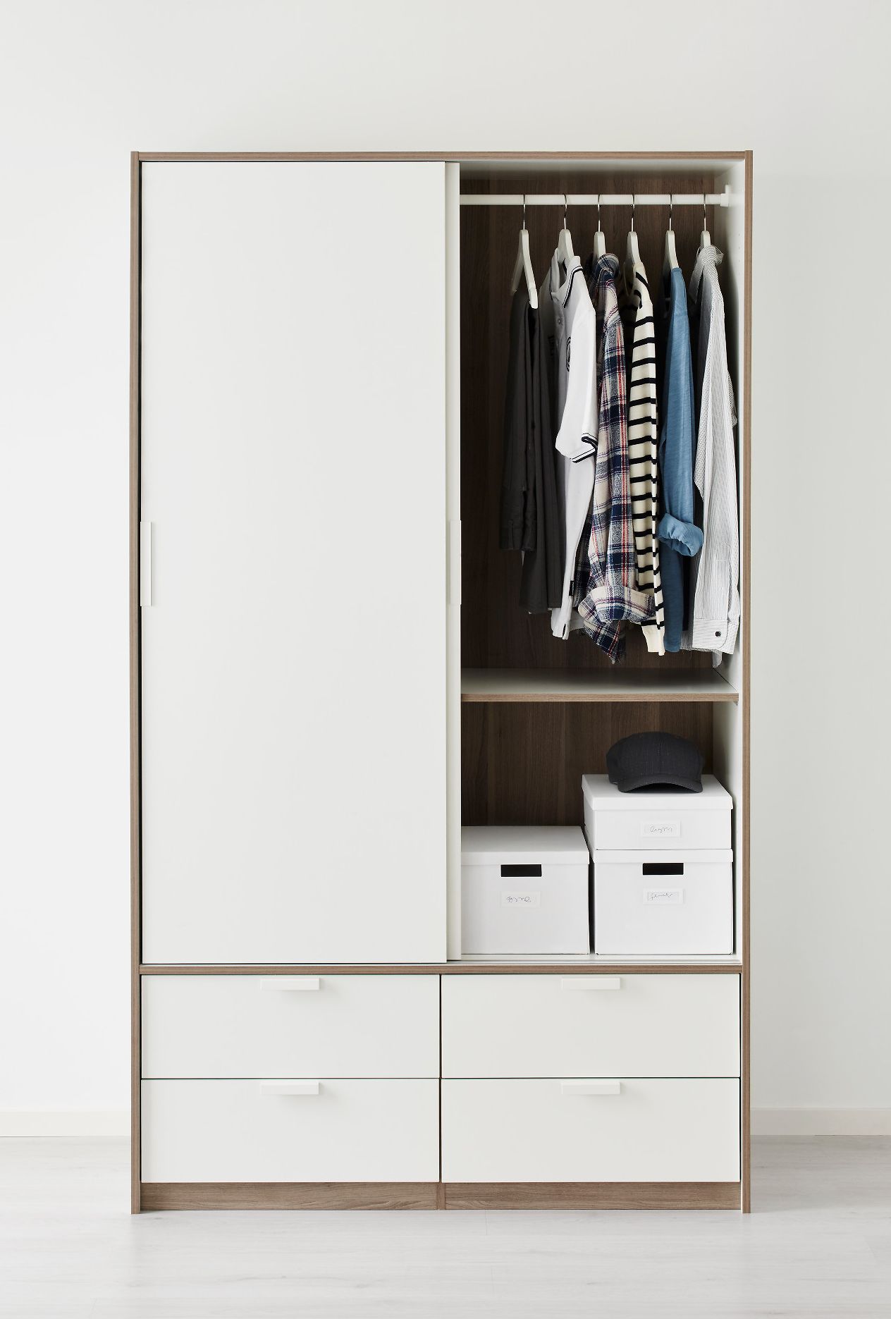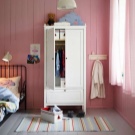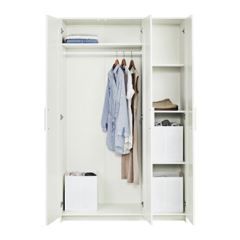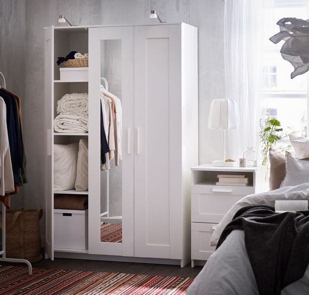 - Liebhaber von massiven Kleiderschrank Anzug weiß Ikea Kleiderschrank mit hohen Beinen. Es ist mit einem Spiegel und geräumigen Regalen zur Aufbewahrung von Kleidung ausgestattet.
