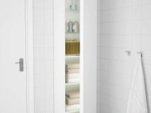 - Ähnliche Designs werden im Badezimmer verwendet. Im Inneren sind sie mit horizontalen Regalen für die bequeme Aufbewahrung von Kleinteilen ausgestattet. Manchmal sind die Türen von Hängeschränken transparent. Für das Badezimmer am häufigsten gewählten Modell von Weiß.