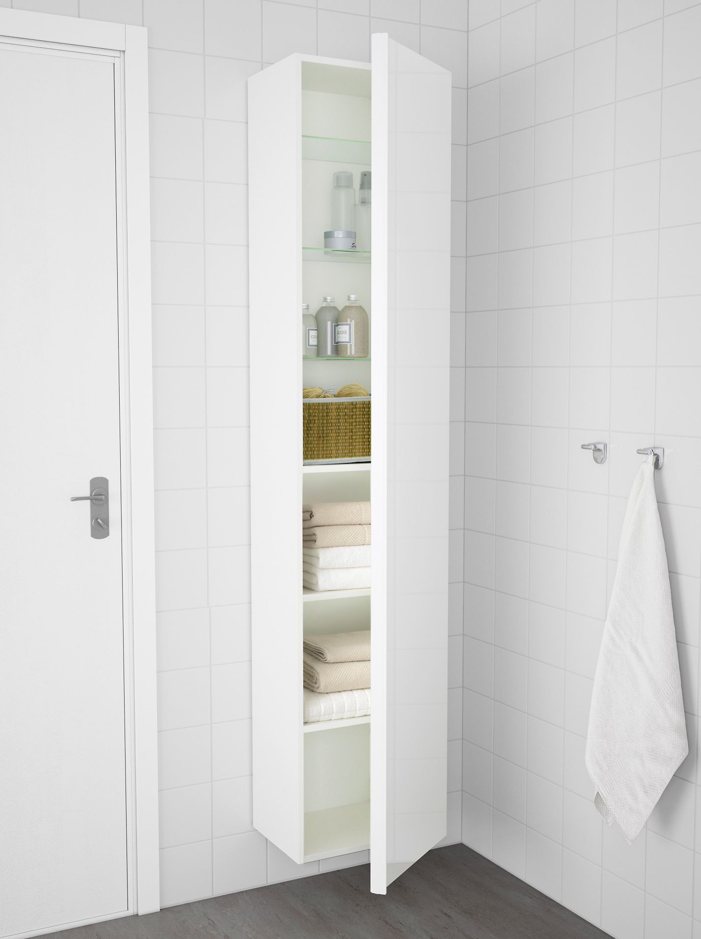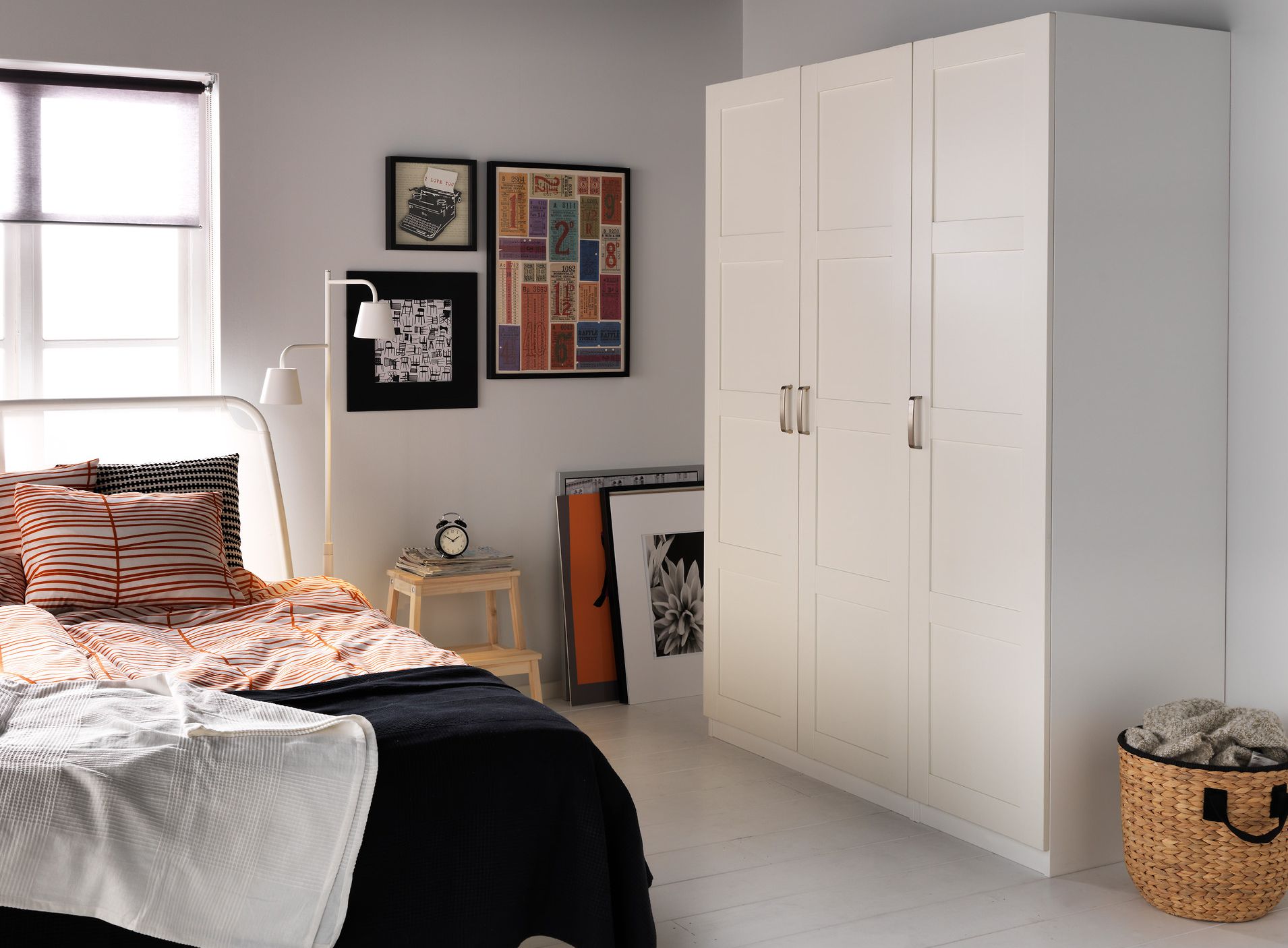 Der Ikea-Katalog bietet den Kauf von weißen Schränken mit verschiedenen Türanbringungsmöglichkeiten: