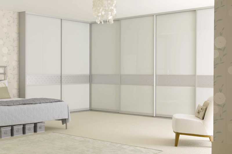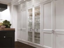 Zusätzlich können die Schranktüren mit einem Muster, das durch Fotodruck aufgetragen wird, mit Spiegeln mit geschnitzten Elementen, Buntglasfenstern und dekorativen Griffen verziert werden.Wenn der Schrank Glastüren hat, können Sie innen die Hintergrundbeleuchtung machen.