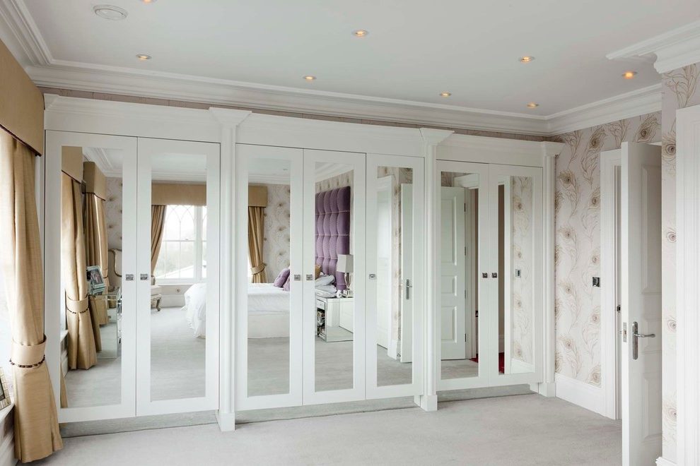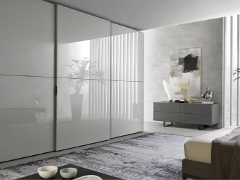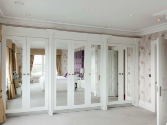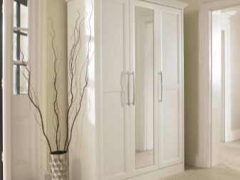 Eine weiße Garderobe in jedem Interieur wird schön und elegant aussehen. Unabhängig von seiner Größe wird der Raum des Raumes viel größer erscheinen. Der Innenraum mit weißem Kleiderschrank sieht hell und leicht aus.