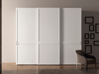 Das Hauptmerkmal ist die Farbe selbst. Der Schrank kann von der Größe eines kleinen Fensters bis zu Schränken für die Länge der gesamten Wand reichen. Weiße Farbe erfüllt die Aufgabe, die Integrität des Raumes auch in kleinen Bereichen zu gewährleisten.