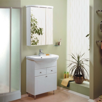 Holzoberflächen in weißer Farbe sehen immer elegant und spektakulär aus. Schränke aus wertvollen Holzarten gehören in der Regel zu einer teureren Preisklasse. Laminierte Spanplatten sind weit verbreitet. Möbel aus Spanplatten haben einfache, prägnante Formen und fügen sich perfekt in moderne Innenräume ein. Aus solchem Material ist es praktisch, Schränke im Badezimmer oder in der Küche zu verwenden.