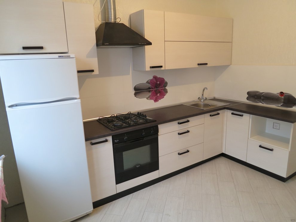 - In der Küche. Weiße Schränke in der Küche sehen sehr gut aus. Küchenset besteht aus Grund- und Wandschränken, Kanistern und Vitrinen. Weiße Farbe erweitert den Raum und macht den Küchenbereich hell und elegant.