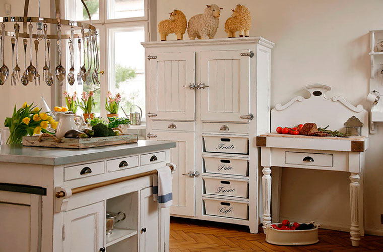 - Provence - für Liebhaber des einfachen Landhausstils. Ein weißes antikes Kabinett betont das charmante rustikale Interieur.