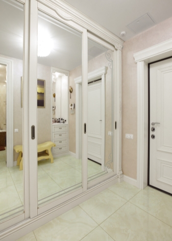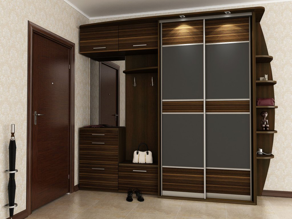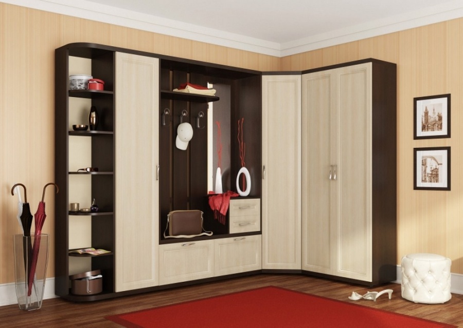 - Die Eingangshalle. Diese Möbel ergänzen perfekt den gesamten Stil und erlauben es Ihnen, Dinge zu verstecken - von Schuhen bis zu Bett. Wenn ein kleines Kind im Haus ist, dann kann ein solcher Schrank leicht zu einem Platz zum Aufbewahren von Spielzeug, Bällen und anderen ähnlichen Gegenständen gemacht werden.