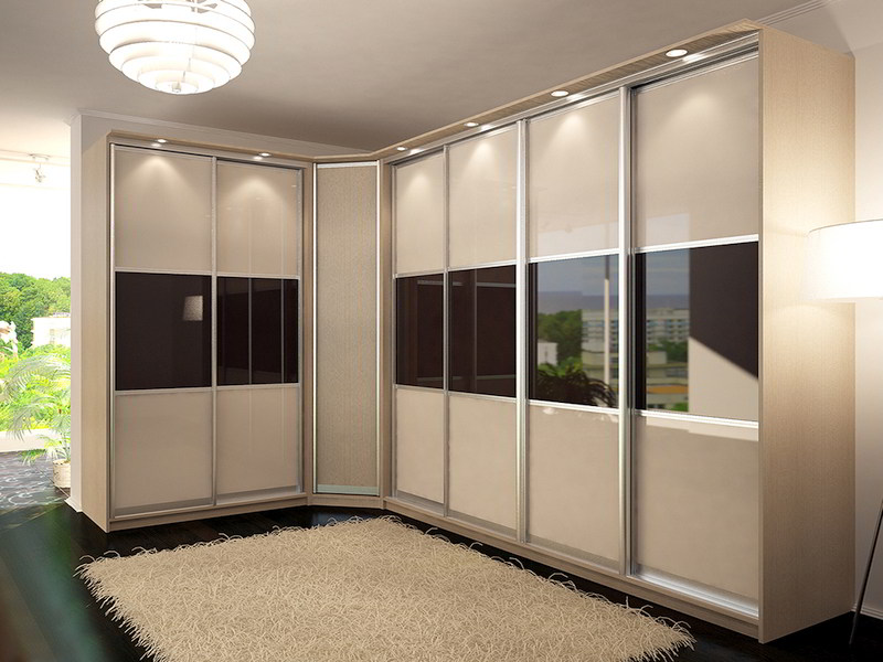 - Ecke. Konstruktionen dieser Art sind entlang zweier Verbindungswände angeordnet. Beachten Sie, dass sie auch mehr und mehr freien Speicherplatz entlang sie belegen können. Sie sind relativ selten, da sie auch in großen Räumen viel Platz einnehmen.