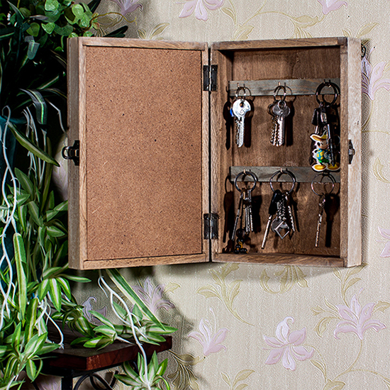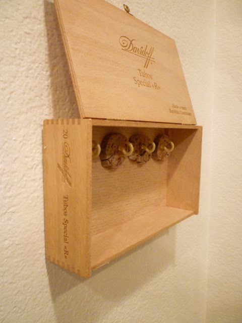 Wenn Sie einen stabileren Schlüsselkasten in Form eines Schließfachs machen möchten, können Sie die alten Holzkästen unbrauchbarer Möbel benutzen. Oft wird zur Herstellung des Bodenmaterials beispielsweise Faserplatten verwendet. Wenn Sie bei der Erstellung eines Schlüsselgebäudes auf diese Option stießen, behandeln Sie die Basis mit einer Wasser-Polymer-Zusammensetzung.Wenn eine solche Emulsion nicht zur Hand ist, können Sie mit Weißleim verdünntes Wasser verwenden.