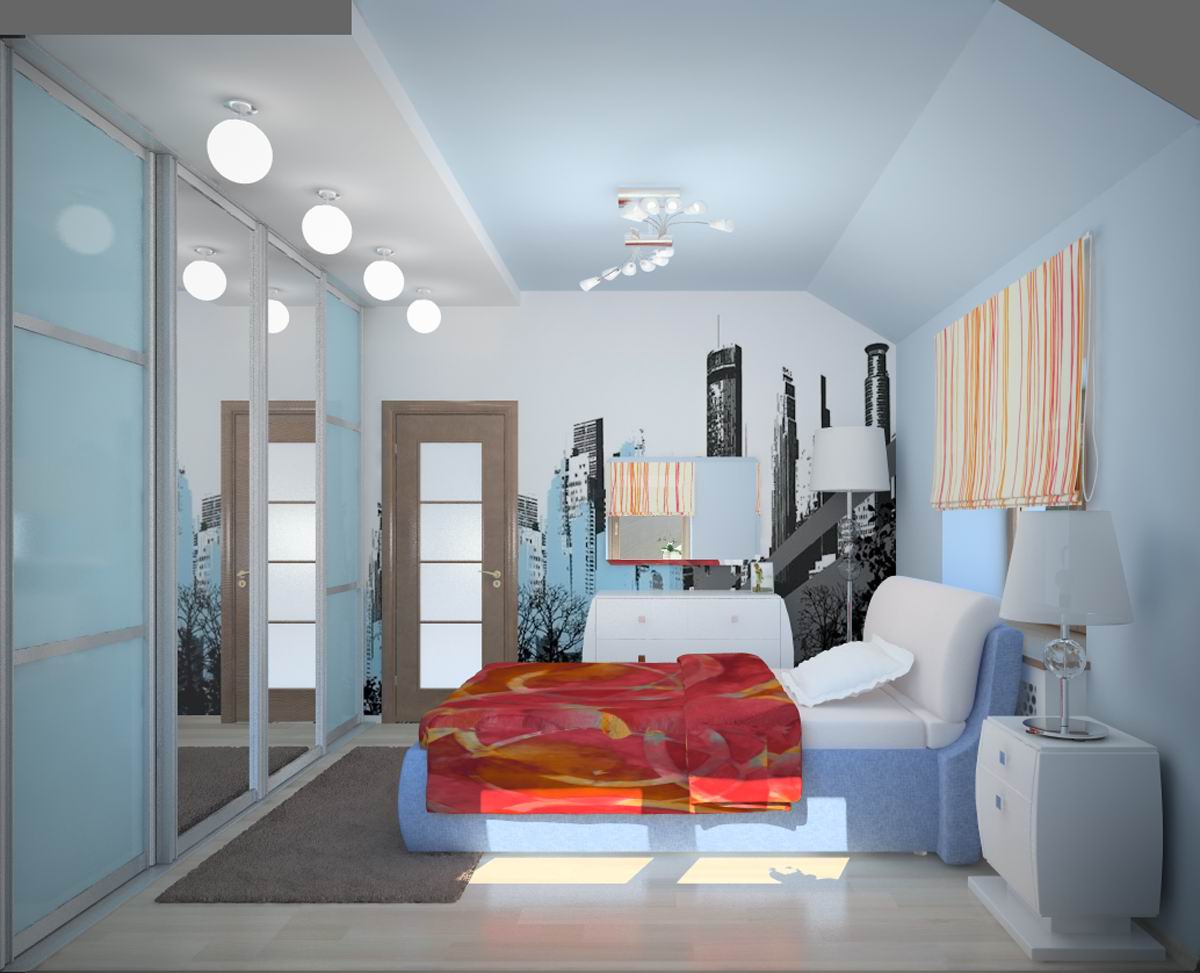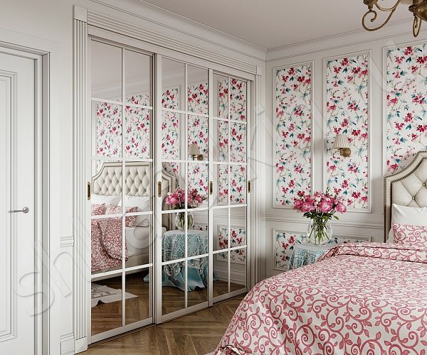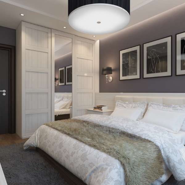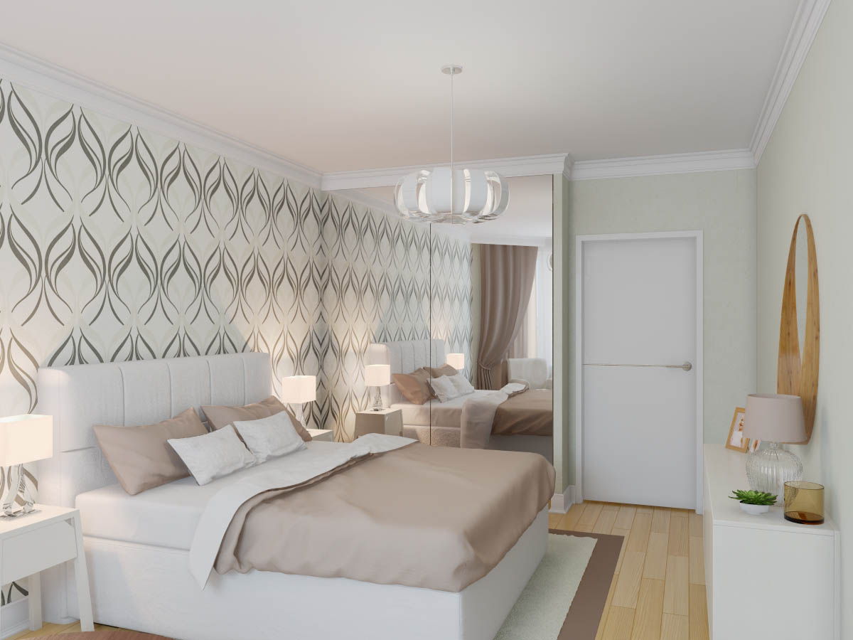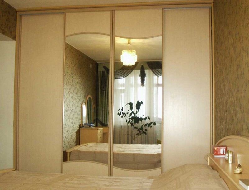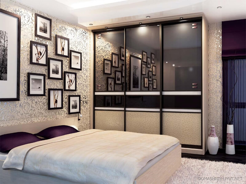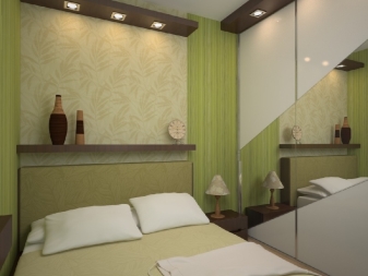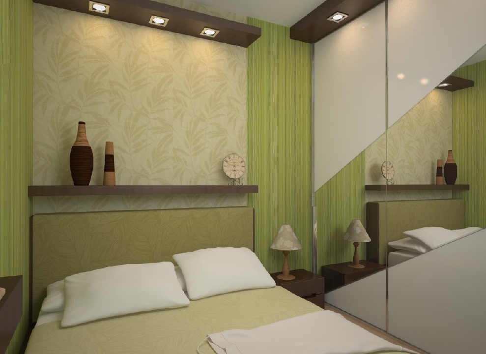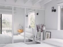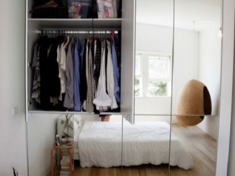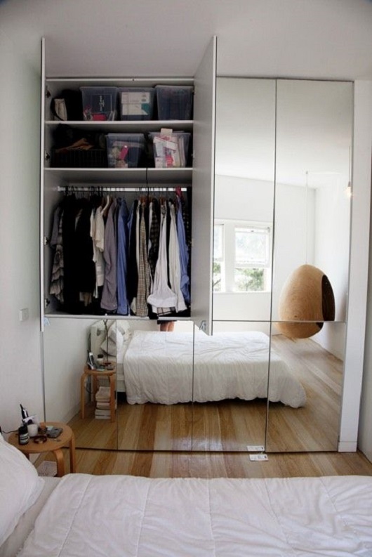 - Spiegel Wie bereits erwähnt, vergrößert die reflektierende Oberfläche optisch die Größe des Raumes, so dass ein Schrank mit Spiegeltüren eine ausgezeichnete Lösung für ein kleines Schlafzimmer ist.