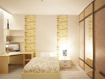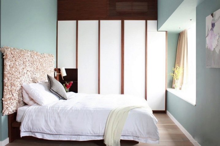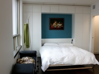Für kleine Wohnfläche wäre eine der besten Möglichkeiten, das Produkt über die gesamte Länge der Wand zu installieren. Dieses Modell wird normalerweise auf Bestellung gefertigt - die Größe Ihres Zimmers.