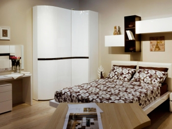 Eine andere Art geeignet für ein kleines Schlafzimmer - Eck- oder L-förmige Fachschränke. Sie nehmen wenig Platz ein, aber gleichzeitig erweisen sie sich als sehr geräumig.