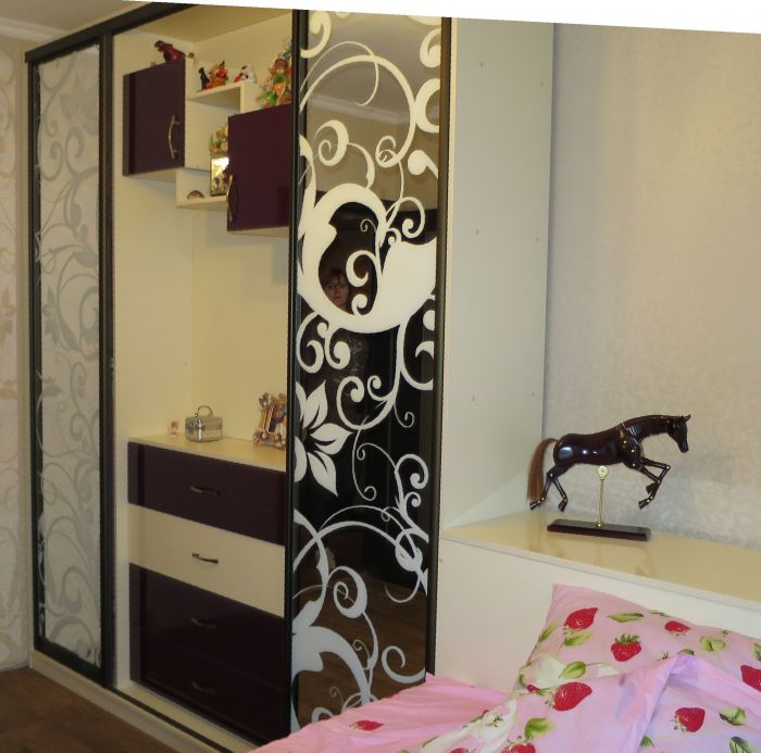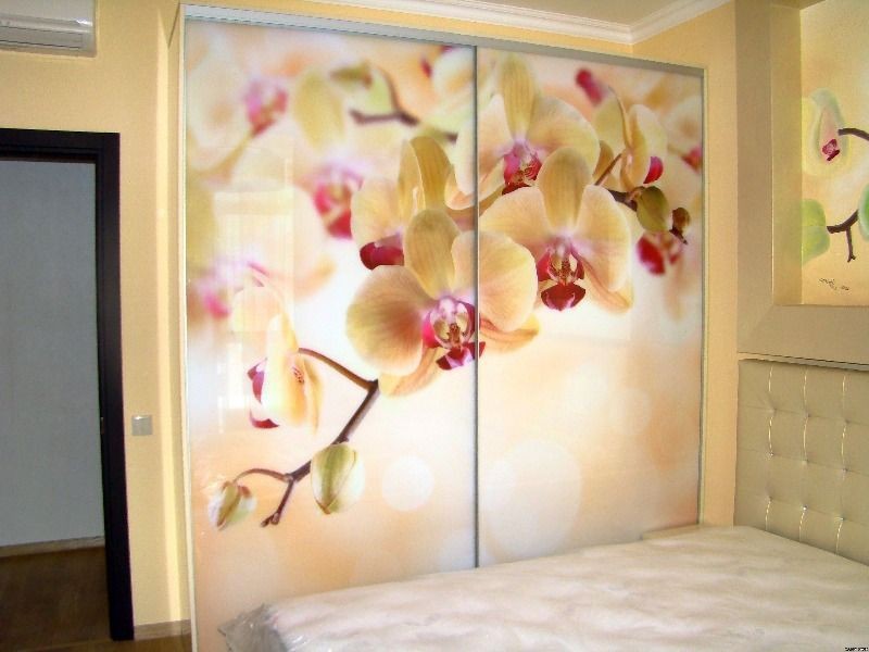 - Fotodruck - Moderne Technologien dank der Verwendung von speziellen Farben erlauben, jedes Foto auf die Schranktüren zu übertragen.Das aufgetragene Bild wird mit ultraviolettem Licht polymerisiert und dann mit Lack beschichtet. Der Raum wird geräumig und sehr komfortabel erscheinen, wenn Sie Bilder von warmen Lichtfarben wählen.