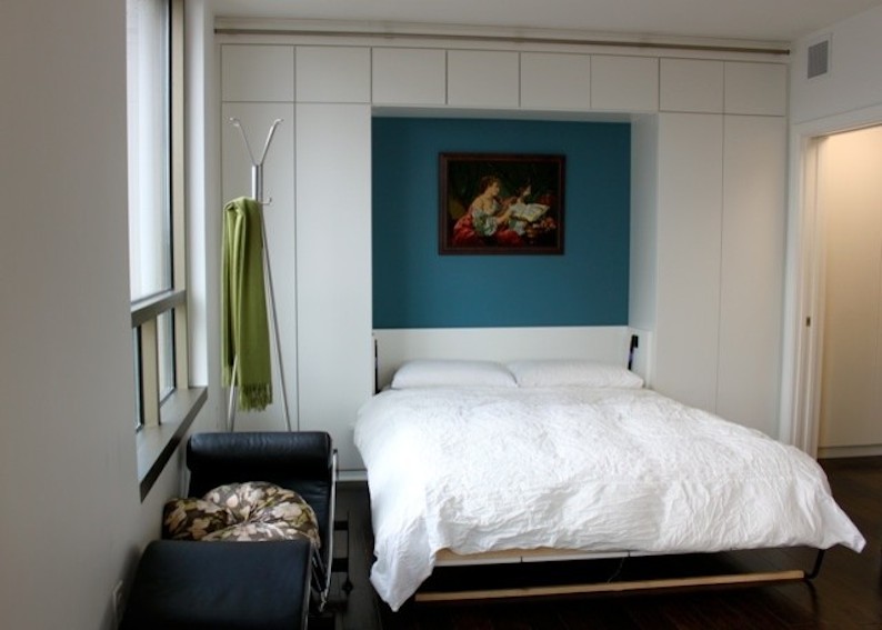 Designer raten auch, die Idee von Einbauschränken für einen kleinen Raum zu verwenden.