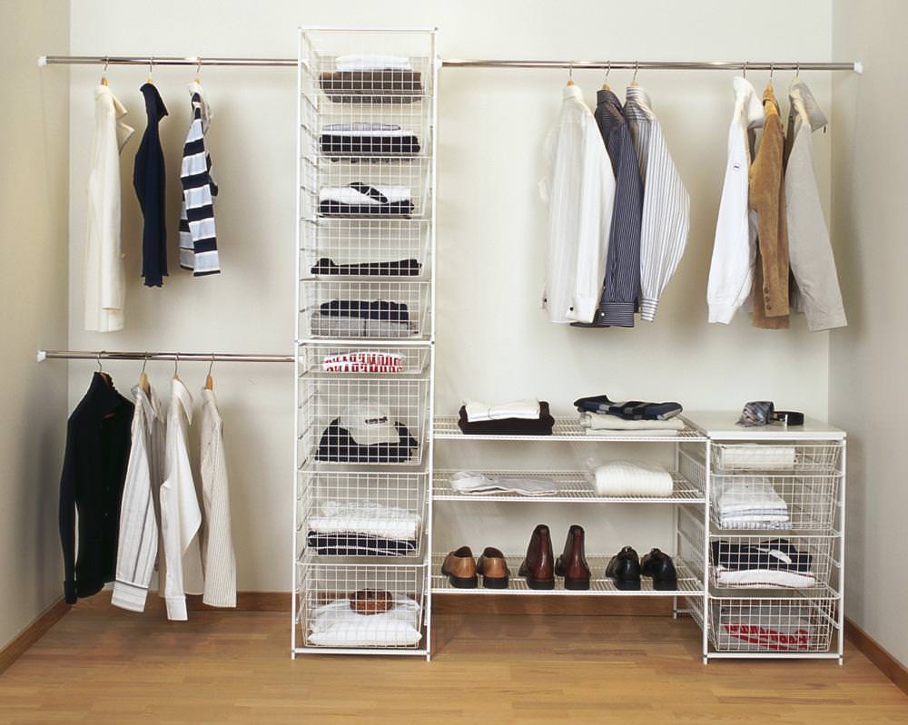Es ist notwendig, über eine ausreichende Anzahl von verschiedenen Regalen und Kleiderbügeln nachzudenken und in den Schrank zu stellen, auf denen es bequem ist, Kleidung und andere Dinge zu platzieren.