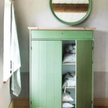 - Wählen Sie die Art des Schrankes. Für einen kleinen Raum können Sie beispielsweise einen Eckschrank oder eine Stoffvariante wählen, die bei Bedarf leicht verschoben werden kann.