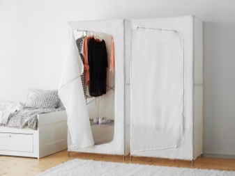 Besondere Aufmerksamkeit sollte Modellen aus Stoff geschenkt werden. Weiche Stoffschränke können leicht von Raum zu Raum bewegt werden. Die Firma Ikea begann vor relativ kurzer Zeit Gewebemodelle zu entwickeln. Aber es sollte gesagt werden, dass viele Käufer bereits alle Vorteile von Lumpenschränken geschätzt haben.