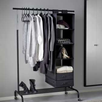 - Besondere Aufmerksamkeit muss bezahlt werden Ikea Langhantelmodelle. Diese Designs sind ideal für kleine Räume. Die Besonderheit der Schränke besteht darin, dass ihre Basis aus einer gewöhnlichen Stange besteht, die zum Aufhängen von Kleidung bestimmt ist. Einige Modelle werden durch Regale ergänzt.