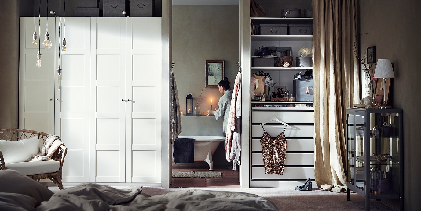 - Wie oben erwähnt, hat Ikea eine Garderobe namens Pax entwickelt. Schränke in dieser Serie werden eine hervorragende Ergänzung für jede Einstellung sein. Die Modelle werden in mehreren Farbtönen präsentiert, was den Auswahlprozess erheblich vereinfacht.