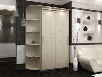 Mit Hilfe solcher Möbel können jedoch nicht nur Dinge platziert werden. Zweifach-Designs eignen sich gleichermaßen für die Aufbewahrung von Ober- und Tages- und Arbeitskleidung, Wäsche, Büchern, Geschirr, Figuren und Sammlungsgegenständen. Kurz gesagt, für alles, was Sie brauchen.