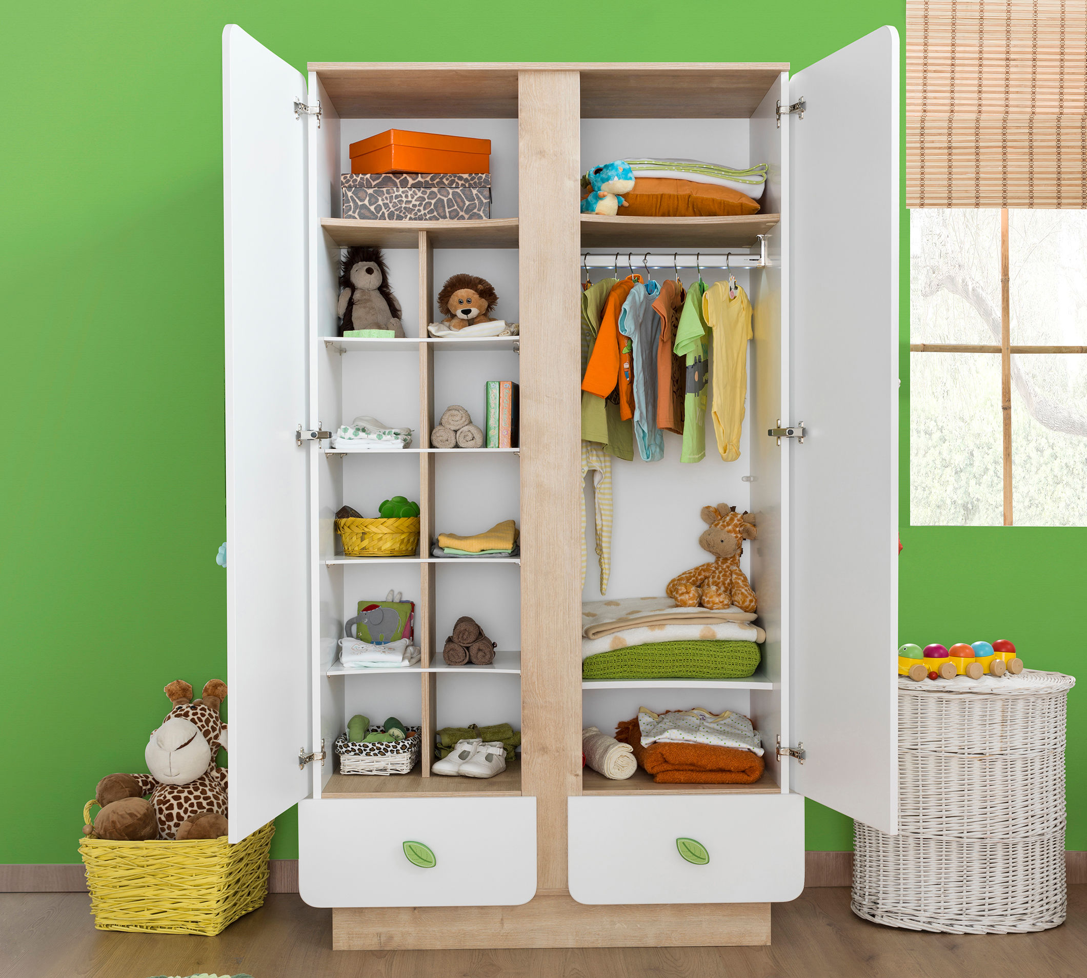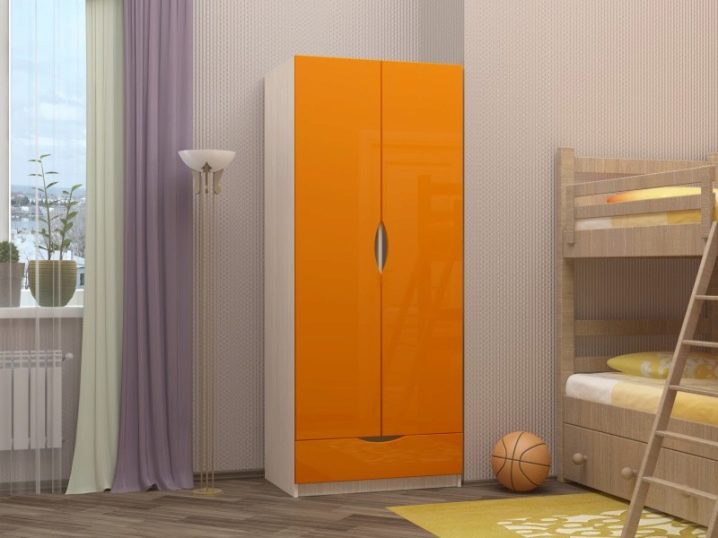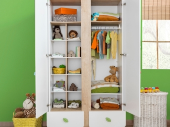 - Das ursprüngliche Design für das Kinderzimmer. Dieses Modell ist ein echter Fund für das Kinderzimmer. Schönes Design wird Kinder und Eltern begeistern, und geräumige und bequeme Regale erlauben Ihnen, alle notwendigen Kleidungsstücke zu platzieren.Boxen und Stangen halten immer alles in Ordnung. Helle Farben des Schrankes sind für jedes Interieur geeignet und erfreuen das Auge.
