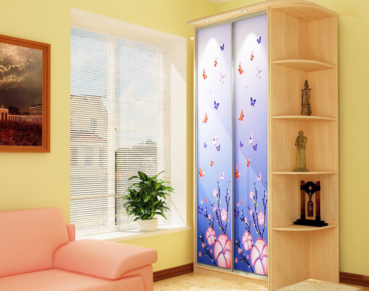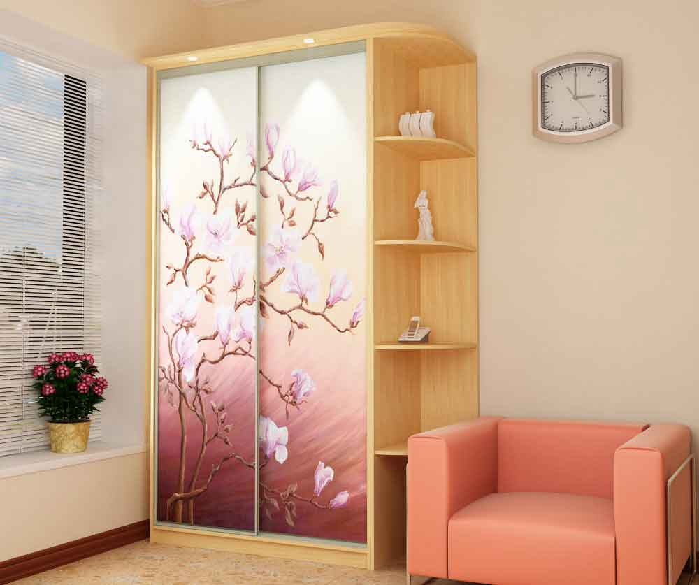 Helle Pastellfarben sind ideal, wenn Sie eine Garderobe für eine Wohnung im Stil der "Provence" kaufen möchten. Es wird gut aussehen Fassaden mit einem Muster in Form von Blumen, Früchten, Zweigen.