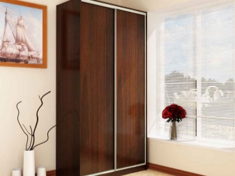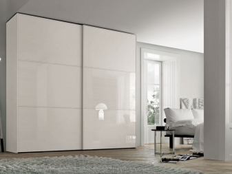 Hinter den Schiebetüren werden am häufigsten zwei Fächer kombiniert: ein Regalfach zum Verstauen von Schrankgegenständen in gefalteter Form und ein Fach für Oberbekleidung, das an Kleiderbügeln, Kleidern und Anzügen aufgehängt ist. Solche praktischen Designs werden erfolgreich in den Räumlichkeiten für jeden Zweck verwendet.