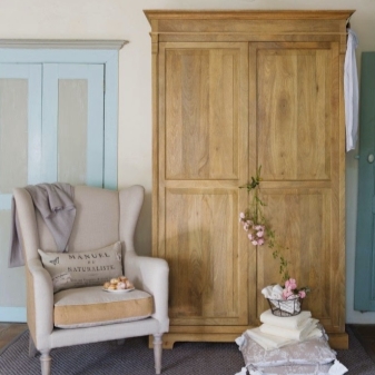 - Um vor äußeren Einflüssen zu schützen und den Schrankkörper aus massivem Naturholz glänzend zu machen, müssen Sie ein Pflegemittel mit Wachs verwenden.