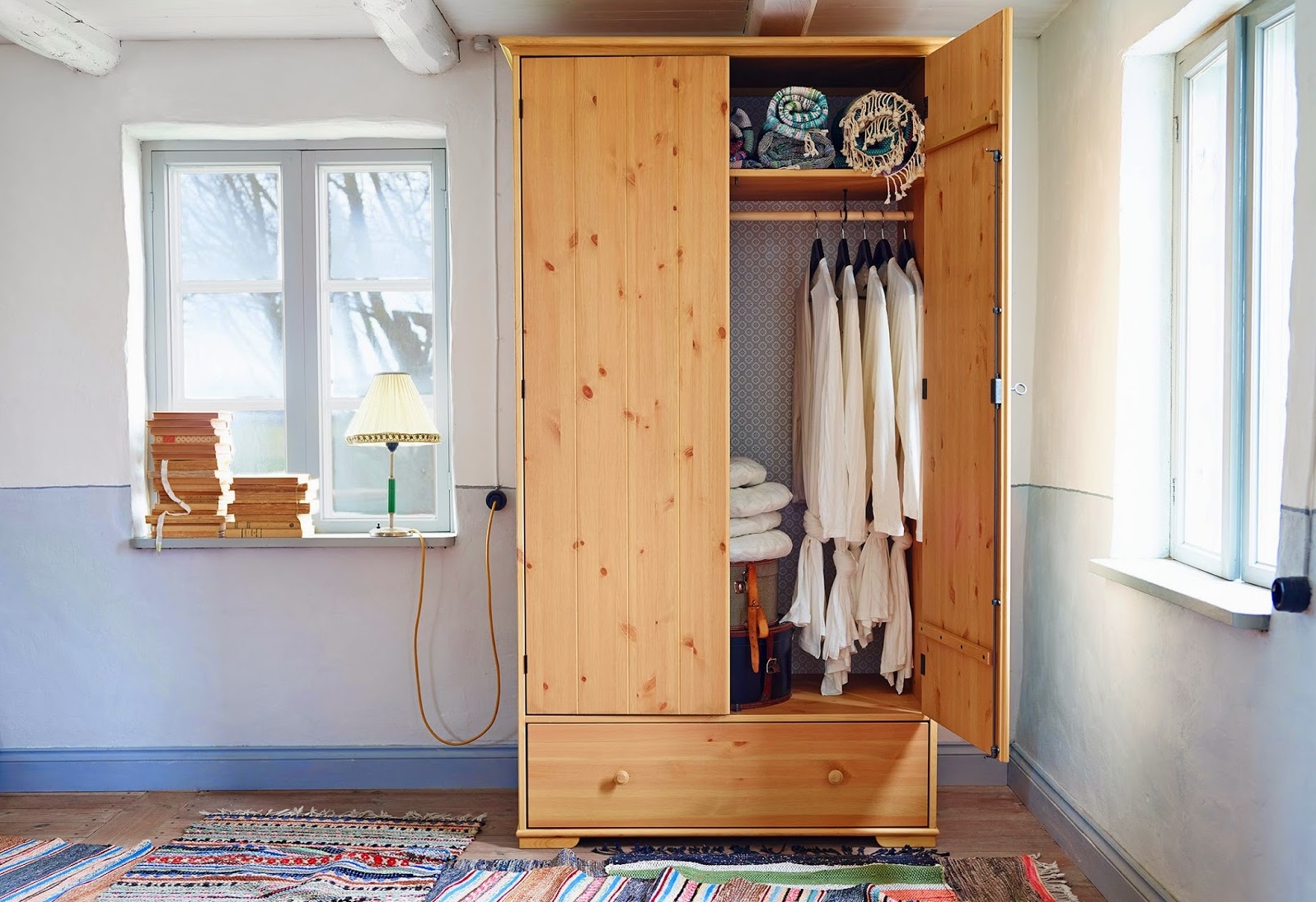 Auswahl eines zweitürigen Schranks, der perfekt in das Innere des Raumes passt und zu einem bestimmten Kleidungsstück passt, Sie können einige der Empfehlungen von Designern verwenden: