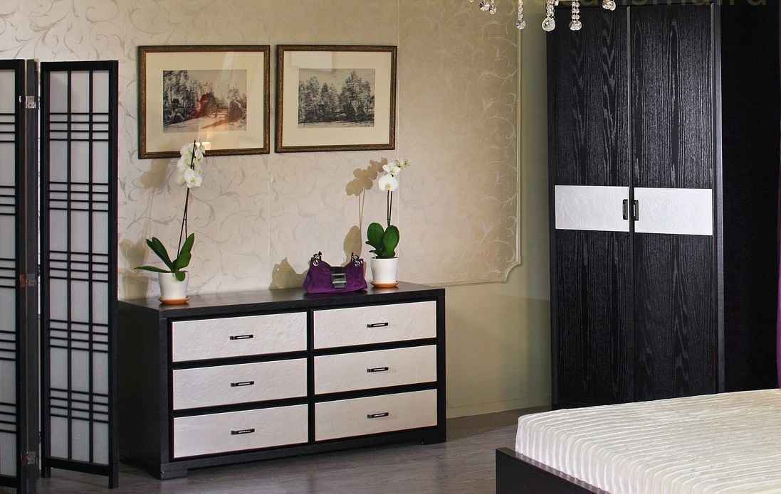 - das Kabinett eines hellen oder weißen Kabinetts ist für einen kleinen Raum perfekt, und ein Kabinett, das von einem dunklen Material, wie Wenge gebildet wird, fügt Eleganz und Eleganz einem geräumigen Raum hinzu;