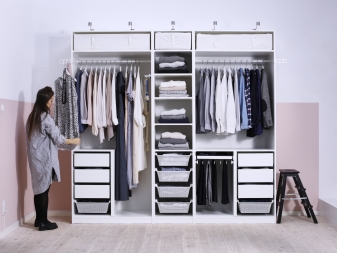 Der modulare Kleiderschrank von Ikea ist ein Kinderspiel. Jedem Design müssen detaillierte Anweisungen beigefügt werden, die Ihnen in diesem Fall helfen.Entpacke den Kauf zuerst. Beginnen Sie mit dem Rahmen und der Basis des Schranks. Dann installieren Sie gegebenenfalls Wände, Haupttüren und zusätzliche Türen. Fix die Fassaden, zusätzliche Regale, Griffe und anderes Zubehör. Befolgen Sie die Anweisungen sorgfältig und Sie werden schnell und ohne Probleme erfolgreich sein.