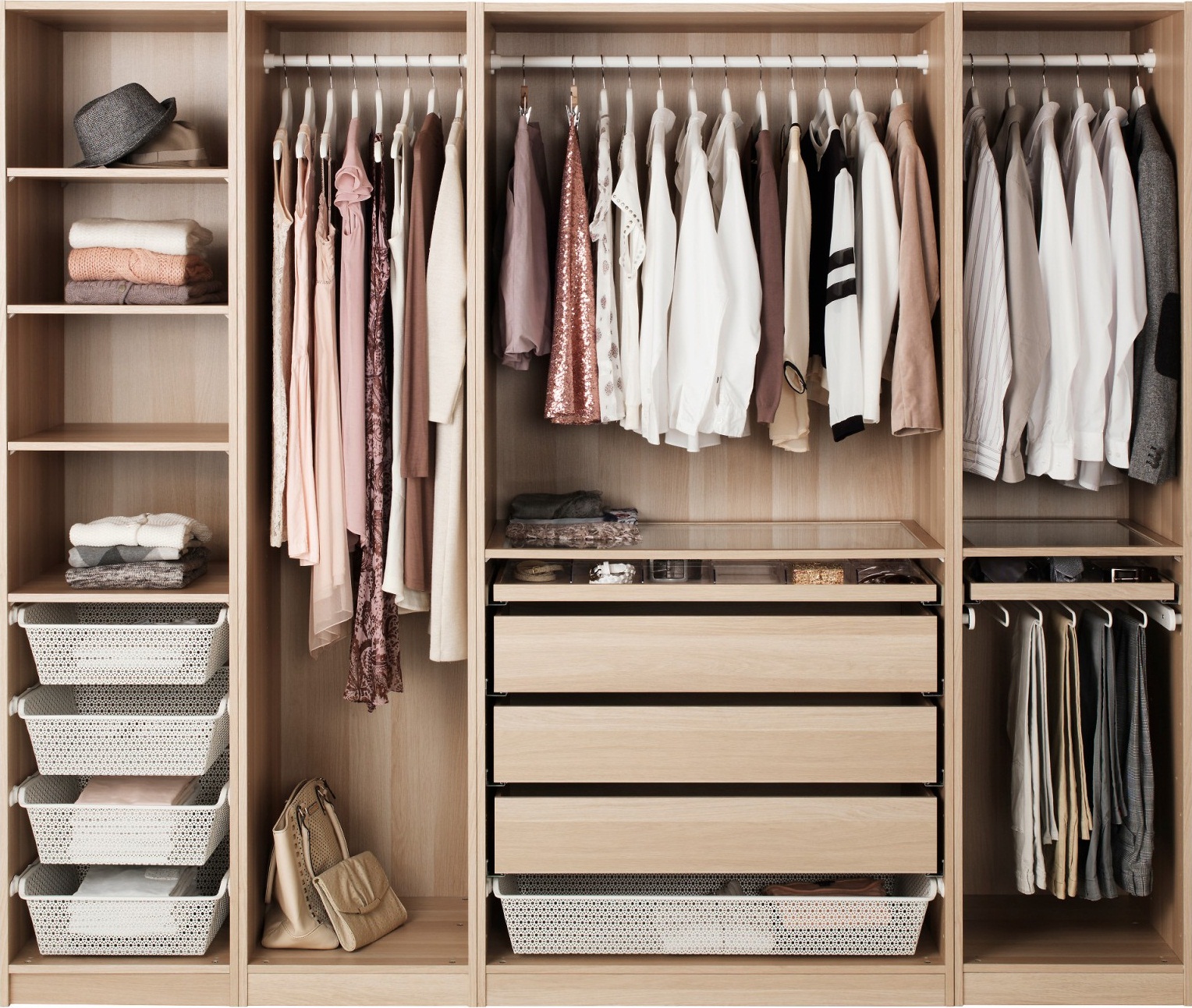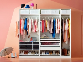 Sowohl normale leere Schränke als auch Modelle mit zusätzlichem Zubehör wie einziehbare Hosen, Regale, Wäschekörbe und mehr stehen zum Verkauf. Sie können sofort einen Schrank mit solchen Ergänzungen kaufen, oder Sie können sie separat kaufen. Sie sind vielseitig und in der Lage, jeden Schrank viel bequemer und funktioneller zu machen. So, schieben Sie Körbe oder Schubladen wird ein ausgezeichneter Speicher für Schuhe, wenn Sie sie auf den unteren Regalen des Schranks platzieren.