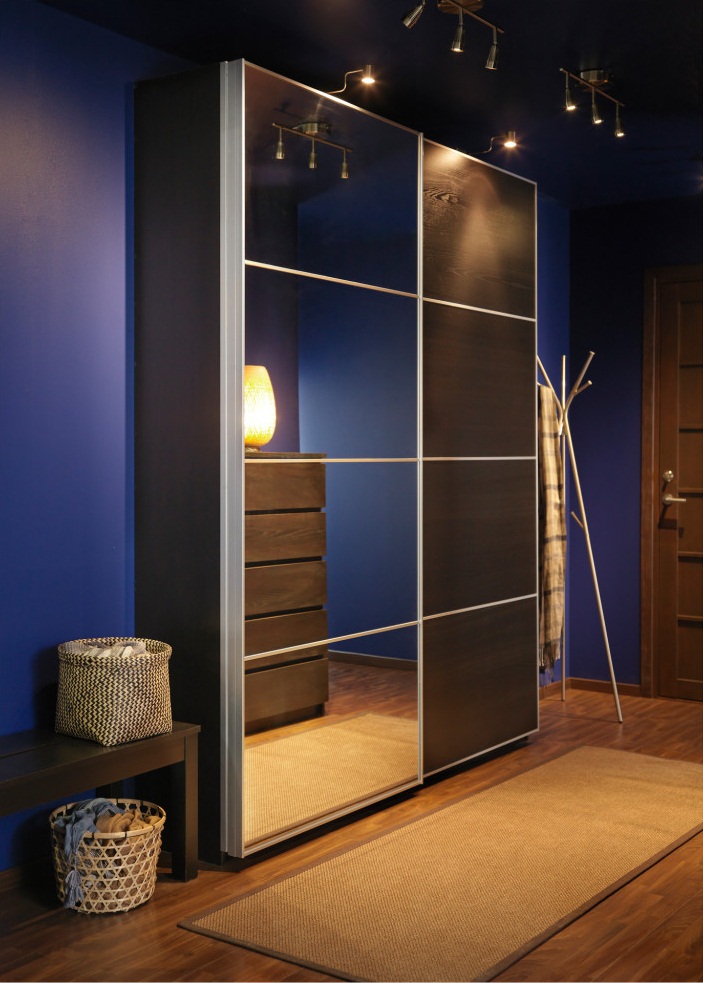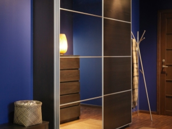 - Schiebeschrank mit Spiegeltüren. Dieses Modell ist ein Klassiker, der jeden Flur ergänzt. Mirrorfazad erweitert den Raum optisch. Türen auf Schienen benötigen im Gegensatz zu den Schwenkoptionen keinen zusätzlichen Platz zum Öffnen. Und innerhalb des Designs passen alle notwendigen Dinge und richtige Kleidung. Interne Inhalte können beliebig sein, alles hängt von Ihren Vorlieben und Ihrem Lebensstil ab.